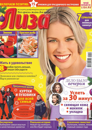 Самый популярный в России еженедельный журнал для молодых женщин «Лиза» стал еще интереснее, еще привлекательнее для читательниц. Теперь больше знаменитостей на страницах любимого журнала! Фитнес со звездой и звездный макияж, уроки стиля и самые горячие новости из жизни кумиров. А еще — модный шопинг, актуальная мода, новинки косметики и великолепные идеи для дома. Романтические истории о настоящей любви и рассказы читательниц о разных жизненных ситуациях. Аспекты психологии, секреты успешных отношений с окружающими и искусство сохранения любви.