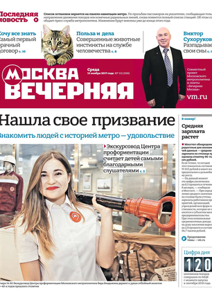 «Вечерняя Москва» — ежедневная российская вечерняя газета, старейшее из вечерних изданий в России, учрежденное в 1923 году. Выходит пять дней в неделю, кроме субботы и воскресенья. Отличается тем, что рассказывает о событиях еще не завершившегося дня. Оперативно освещает хронику и особенности жизни Москвы, охватывает все слои общества и большинство профессиональных и возрастных групп читателей.Издание представлено тремя выпусками – утренним ежедневным, вечерним (выходит три раза в неделю), еженедельным (выходит по четвергам).