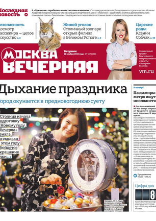 «Вечерняя Москва» — ежедневная российская вечерняя газета, старейшее из вечерних изданий в России, учрежденное в 1923 году. Выходит пять дней в неделю, кроме субботы и воскресенья. Отличается тем, что рассказывает о событиях еще не завершившегося дня. Оперативно освещает хронику и особенности жизни Москвы, охватывает все слои общества и большинство профессиональных и возрастных групп читателей.Издание представлено тремя выпусками – утренним ежедневным, вечерним (выходит три раза в неделю), еженедельным (выходит по четвергам).