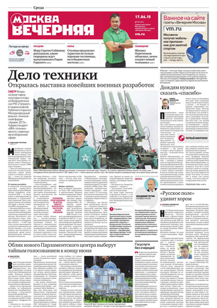 «Вечерняя Москва» — ежедневная российская вечерняя газета, старейшее из вечерних изданий в России, учрежденное в 1923 году. Выходит пять дней в неделю, кроме субботы и воскресенья. Отличается тем, что рассказывает о событиях еще не завершившегося дня. Оперативно освещает хронику и особенности жизни Москвы, охватывает все слои общества и большинство профессиональных и возрастных групп читателей.Издание представлено тремя выпусками – утренним ежедневным, вечерним (выходит три раза в неделю), еженедельным (выходит по четвергам).