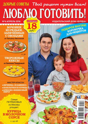 «Добрые советы. Люблю готовить!» — журнал о вкусной еде, не похожий на другие кулинарные издания. Все опубликованные в нем рецепты присланы в редакцию самими читателями. Каждый рецепт прошел конкурсный отбор, а его автор получил денежный приз. Ежемесячно на страницах журнала — более 100 коронных блюд, которые многократно проверены опытными хозяйками и которые можно смело брать в свою коллекцию рецептов тем, кто любит баловать родных и удивлять гостей.
