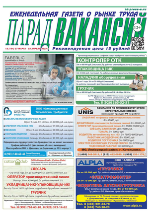 ЕЖЕНЕДЕЛЬНАЯ ГАЗЕТА О РЫНКЕ ТРУДА ПАРАД ВАКАНСИЙ
