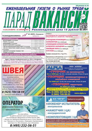 ЕЖЕНЕДЕЛЬНАЯ ГАЗЕТА О РЫНКЕ ТРУДА ПАРАД ВАКАНСИЙ