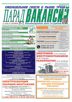 ЕЖЕНЕДЕЛЬНАЯ ГАЗЕТА О РЫНКЕ ТРУДА ПАРАД ВАКАНСИЙ