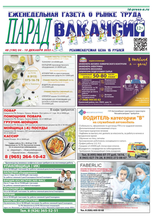 ЕЖЕНЕДЕЛЬНАЯ ГАЗЕТА О РЫНКЕ ТРУДА ПАРАД ВАКАНСИЙ