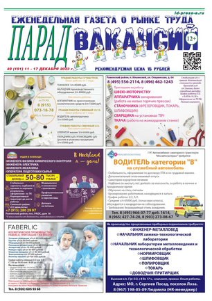 ЕЖЕНЕДЕЛЬНАЯ ГАЗЕТА О РЫНКЕ ТРУДА ПАРАД ВАКАНСИЙ