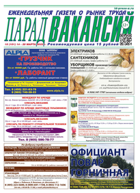 ЕЖЕНЕДЕЛЬНАЯ ГАЗЕТА О РЫНКЕ ТРУДА ПАРАД ВАКАНСИЙ (20 (111))