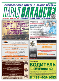 ЕЖЕНЕДЕЛЬНАЯ ГАЗЕТА О РЫНКЕ ТРУДА ПАРАД ВАКАНСИЙ (31 (122))