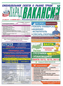 ЕЖЕНЕДЕЛЬНАЯ ГАЗЕТА О РЫНКЕ ТРУДА ПАРАД ВАКАНСИЙ (21 (63))