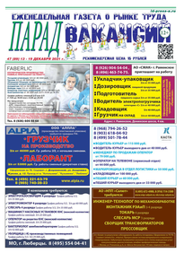 ЕЖЕНЕДЕЛЬНАЯ ГАЗЕТА О РЫНКЕ ТРУДА ПАРАД ВАКАНСИЙ (47 (89))