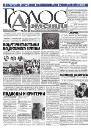 Общественно-политическое издание "Голос Армении"  выходит с мая 1991 года и является наиболее популярной, авторитетной и цитируемой русскоязычной газетой страны. Спектр затрагиваемых проблем - самый широкий: от политики и экономики до культуры и социальных сетей, а авторы "Голоса Армении" по праву составляют золотой фонд современной армянской журналистики.