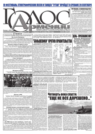 Общественно-политическое издание "Голос Армении"  выходит с мая 1991 года и является наиболее популярной, авторитетной и цитируемой русскоязычной газетой страны. Спектр затрагиваемых проблем - самый широкий: от политики и экономики до культуры и социальных сетей, а авторы "Голоса Армении" по праву составляют золотой фонд современной армянской журналистики.