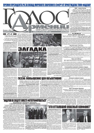 Общественно-политическое издание "Голос Армении" выходит с мая 1991 года и является наиболее популярной, авторитетной и цитируемой русскоязычной газетой страны. Спектр затрагиваемых проблем - самый широкий: от политики и экономики до культуры и социальных сетей, а авторы "Голоса Армении" по праву составляют золотой фонд современной армянской журналистики.