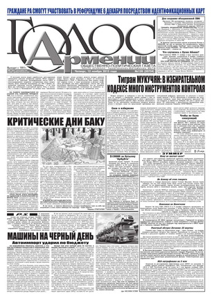 Общественно-политическое издание "Голос Армении" выходит с мая 1991 года и является наиболее популярной, авторитетной и цитируемой русскоязычной газетой страны. Спектр затрагиваемых проблем - самый широкий: от политики и экономики до культуры и социальных сетей, а авторы "Голоса Армении" по праву составляют золотой фонд современной армянской журналистики.