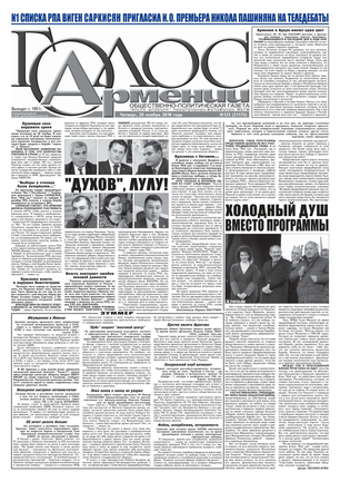 Общественно-политическое издание "Голос Армении"  выходит с мая 1991 года и является наиболее популярной, авторитетной и цитируемой русскоязычной газетой страны. Спектр затрагиваемых проблем - самый широкий: от политики и экономики до культуры и социальных сетей, а авторы "Голоса Армении" по праву составляют золотой фонд современной армянской журналистики.