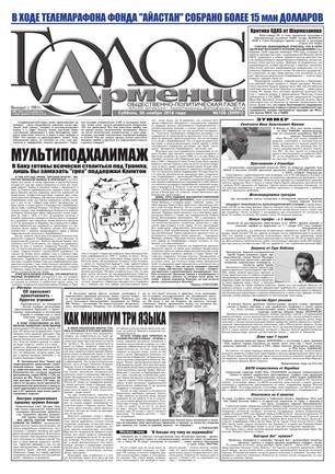Общественно-политическое издание "Голос Армении" выходит с мая 1991 года и является наиболее популярной, авторитетной и цитируемой русскоязычной газетой страны. Спектр затрагиваемых проблем - самый широкий: от политики и экономики до культуры и социальных сетей, а авторы "Голоса Армении" по праву составляют золотой фонд современной армянской журналистики.