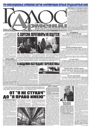 Общественно-политическое издание "Голос Армении"  выходит с мая 1991 года и является наиболее популярной, авторитетной и цитируемой русскоязычной газетой страны. Спектр затрагиваемых проблем - самый широкий: от политики и экономики до культуры и социальных сетей, а авторы "Голоса Армении" по праву составляют золотой фонд современной армянской журналистики.