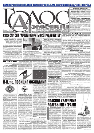 Общественно-политическое издание "Голос Армении" выходит с мая 1991 года и является наиболее популярной, авторитетной и цитируемой русскоязычной газетой страны. Спектр затрагиваемых проблем - самый широкий: от политики и экономики до культуры и социальных сетей, а авторы "Голоса Армении" по праву составляют золотой фонд современной армянской журналистики.