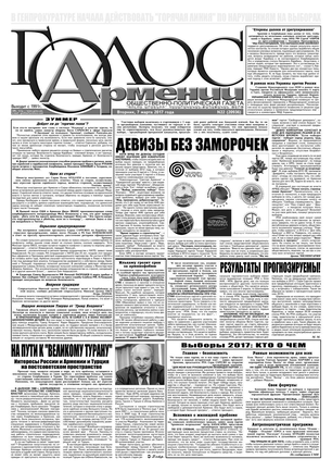 Общественно-политическое издание "Голос Армении"  выходит с мая 1991 года и является наиболее популярной, авторитетной и цитируемой русскоязычной газетой страны. Спектр затрагиваемых проблем - самый широкий: от политики и экономики до культуры и социальных сетей, а авторы "Голоса Армении" по праву составляют золотой фонд современной армянской журналистики.