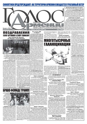 Общественно-политическое издание "Голос Армении"  выходит с мая 1991 года и является наиболее популярной, авторитетной и цитируемой русскоязычной газетой страны. Спектр затрагиваемых проблем - самый широкий: от политики и экономики до культуры и социальных сетей, а авторы "Голоса Армении" по праву составляют золотой фонд современной армянской журналистики.