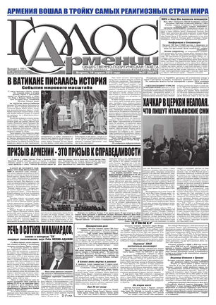 Общественно-политическое издание "Голос Армении" выходит с мая 1991 года и является наиболее популярной, авторитетной и цитируемой русскоязычной газетой страны. Спектр затрагиваемых проблем - самый широкий: от политики и экономики до культуры и социальных сетей, а авторы "Голоса Армении" по праву составляют золотой фонд современной армянской журналистики.