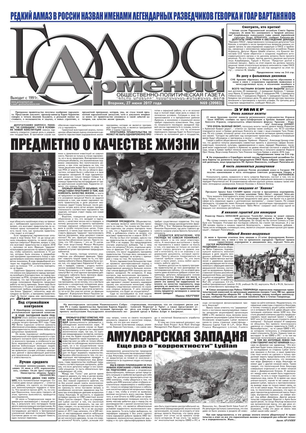 Общественно-политическое издание "Голос Армении"  выходит с мая 1991 года и является наиболее популярной, авторитетной и цитируемой русскоязычной газетой страны. Спектр затрагиваемых проблем - самый широкий: от политики и экономики до культуры и социальных сетей, а авторы "Голоса Армении" по праву составляют золотой фонд современной армянской журналистики.