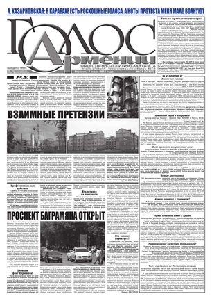 Общественно-политическое издание "Голос Армении" выходит с мая 1991 года и является наиболее популярной, авторитетной и цитируемой русскоязычной газетой страны. Спектр затрагиваемых проблем - самый широкий: от политики и экономики до культуры и социальных сетей, а авторы "Голоса Армении" по праву составляют золотой фонд современной армянской журналистики.