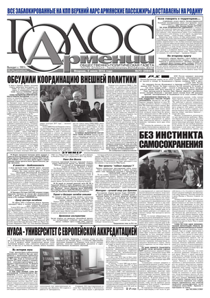 Общественно-политическое издание "Голос Армении"  выходит с мая 1991 года и является наиболее популярной, авторитетной и цитируемой русскоязычной газетой страны. Спектр затрагиваемых проблем - самый широкий: от политики и экономики до культуры и социальных сетей, а авторы "Голоса Армении" по праву составляют золотой фонд современной армянской журналистики.