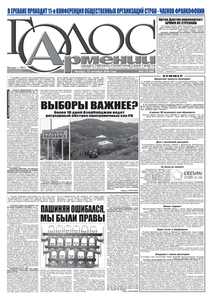 Общественно-политическое издание "Голос Армении"  выходит с мая 1991 года и является наиболее популярной, авторитетной и цитируемой русскоязычной газетой страны. Спектр затрагиваемых проблем - самый широкий: от политики и экономики до культуры и социальных сетей, а авторы "Голоса Армении" по праву составляют золотой фонд современной армянской журналистики.