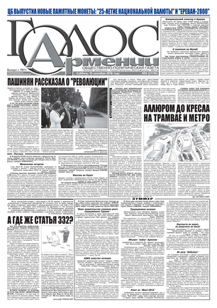 Общественно-политическое издание "Голос Армении"  выходит с мая 1991 года и является наиболее популярной, авторитетной и цитируемой русскоязычной газетой страны. Спектр затрагиваемых проблем - самый широкий: от политики и экономики до культуры и социальных сетей, а авторы "Голоса Армении" по праву составляют золотой фонд современной армянской журналистики.