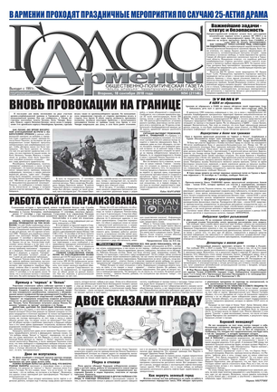 Общественно-политическое издание "Голос Армении"  выходит с мая 1991 года и является наиболее популярной, авторитетной и цитируемой русскоязычной газетой страны. Спектр затрагиваемых проблем - самый широкий: от политики и экономики до культуры и социальных сетей, а авторы "Голоса Армении" по праву составляют золотой фонд современной армянской журналистики.