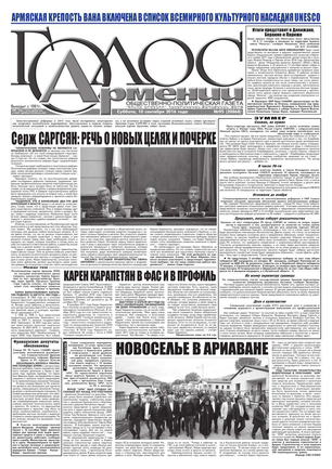 Общественно-политическое издание "Голос Армении"  выходит с мая 1991 года и является наиболее популярной, авторитетной и цитируемой русскоязычной газетой страны. Спектр затрагиваемых проблем - самый широкий: от политики и экономики до культуры и социальных сетей, а авторы "Голоса Армении" по праву составляют золотой фонд современной армянской журналистики.