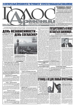 Общественно-политическое издание "Голос Армении"  выходит с мая 1991 года и является наиболее популярной, авторитетной и цитируемой русскоязычной газетой страны. Спектр затрагиваемых проблем - самый широкий: от политики и экономики до культуры и социальных сетей, а авторы "Голоса Армении" по праву составляют золотой фонд современной армянской журналистики.