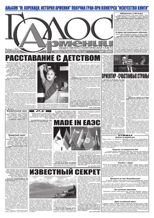 Общественно-политическое издание "Голос Армении"  выходит с мая 1991 года и является наиболее популярной, авторитетной и цитируемой русскоязычной газетой страны. Спектр затрагиваемых проблем - самый широкий: от политики и экономики до культуры и социальных сетей, а авторы "Голоса Армении" по праву составляют золотой фонд современной армянской журналистики.