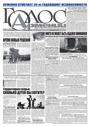 Общественно-политическое издание "Голос Армении"  выходит с мая 1991 года и является наиболее популярной, авторитетной и цитируемой русскоязычной газетой страны. Спектр затрагиваемых проблем - самый широкий: от политики и экономики до культуры и социальных сетей, а авторы "Голоса Армении" по праву составляют золотой фонд современной армянской журналистики.