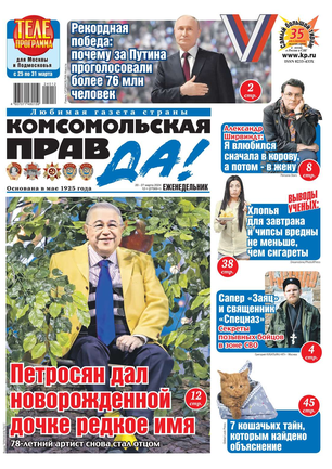 Многостраничный выпуск «Комсомольской правды», который выходит еженедельно по пятницам. Основные рубрики «КП – толстушки»: «Беседка «КП», «Дурилка «КП», «Клубный пиджак», «Антиреклама», «Окно в природу», «Россия, вперед», «Светская жизнь», детская страничка и так далее. Спецпроекты еженедельника «Комсомольская правда (толстушка)»: «КП» - здоровье» (народные рецепты здоровья и, конечно же, консультации и советы профессиональных эскулапов); «Моя дача» (если у вас есть приусадебный участок, возникает вопрос, как его грамотно обустроить и собрать с нескольких соток богатый урожай); «Телевизор «КП» (все, что вы хотите знать о телевидении, шоу-бизнесе, любимых сериалах, актерах, телеведущих, а также о закулисной тележизни) и многое другое.