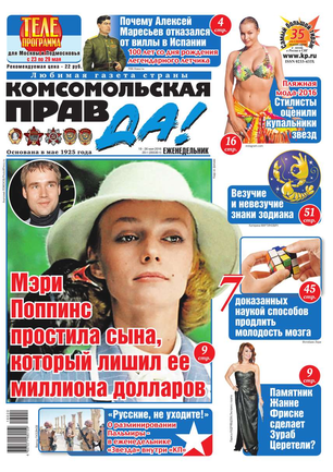 Многостраничный выпуск «Комсомольской правды», который выходит еженедельно по пятницам. Основные рубрики «КП – толстушки»: «Беседка «КП», «Дурилка «КП», «Клубный пиджак», «Антиреклама», «Окно в природу», «Россия, вперед», «Светская жизнь», детская страничка и так далее. Спецпроекты еженедельника «Комсомольская правда (толстушка)»: «КП» - здоровье» (народные рецепты здоровья и, конечно же, консультации и советы профессиональных эскулапов); «Моя дача» (если у вас есть приусадебный участок, возникает вопрос, как его грамотно обустроить и собрать с нескольких соток богатый урожай); «Телевизор «КП» (все, что вы хотите знать о телевидении, шоу-бизнесе, любимых сериалах, актерах, телеведущих, а также о закулисной тележизни) и многое другое.