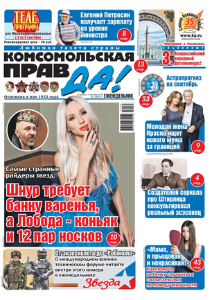 Многостраничный выпуск «Комсомольской правды», который выходит еженедельно по пятницам. Основные рубрики «КП – толстушки»: «Беседка «КП», «Дурилка «КП», «Клубный пиджак», «Антиреклама», «Окно в природу», «Россия, вперед», «Светская жизнь», детская страничка и так далее. Спецпроекты еженедельника «Комсомольская правда (толстушка)»: «КП» - здоровье» (народные рецепты здоровья и, конечно же, консультации и советы профессиональных эскулапов); «Моя дача» (если у вас есть приусадебный участок, возникает вопрос, как его грамотно обустроить и собрать с нескольких соток богатый урожай); «Телевизор «КП» (все, что вы хотите знать о телевидении, шоу-бизнесе, любимых сериалах, актерах, телеведущих, а также о закулисной тележизни) и многое другое.