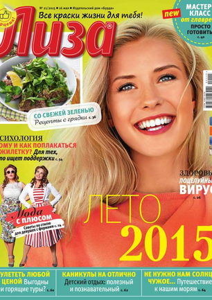 Самый популярный в России еженедельный журнал для молодых женщин «Лиза» стал еще интереснее, еще привлекательнее для читательниц. Теперь больше знаменитостей на страницах любимого журнала! Фитнес со звездой и звездный макияж, уроки стиля и самые горячие новости из жизни кумиров. А еще — модный шопинг, актуальная мода, новинки косметики и великолепные идеи для дома. Романтические истории о настоящей любви и рассказы читательниц о разных жизненных ситуациях. Аспекты психологии, секреты успешных отношений с окружающими и искусство сохранения любви.