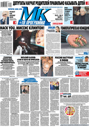 Московский комсомолец - популярная российская газета. Выходит во всех крупных городах России. Ежедневно обновляемые статьи, обзоры, комментарии. Собственная лента новостей. Выходит с 11 декабря 1919 г. Распространяется по всей России, в ближнем зарубежье, в Европе и Америке.Тематика: общественно-политическое издание, органично сочетающее острые социальные и политические материалы, экономические обзоры, городские новости, светскую хронику и развлекательную информацию.
