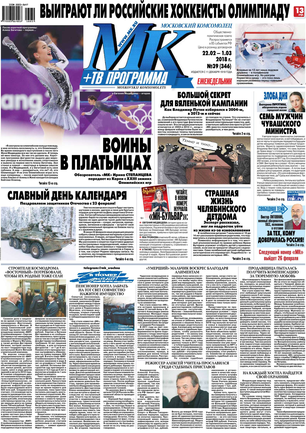 Московский комсомолец - популярная российская газета. Выходит во всех крупных городах России. Ежедневно обновляемые статьи, обзоры, комментарии. Собственная лента новостей. Выходит с 11 декабря 1919 г. Распространяется по всей России, в ближнем зарубежье, в Европе и Америке.Тематика: общественно-политическое издание, органично сочетающее острые социальные и политические материалы, экономические обзоры, городские новости, светскую хронику и развлекательную информацию.