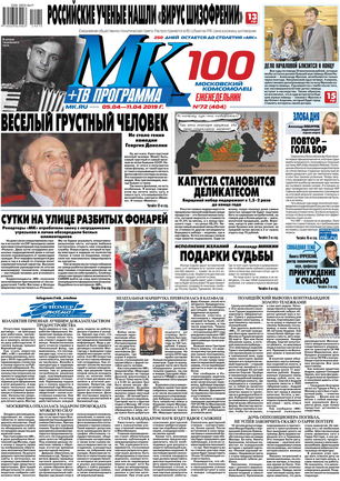 Московский комсомолец - популярная российская газета. Выходит во всех крупных городах России. Ежедневно обновляемые статьи, обзоры, комментарии. Собственная лента новостей. Выходит с 11 декабря 1919 г. Распространяется по всей России, в ближнем зарубежье, в Европе и Америке.