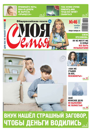 Общероссийская газета «Моя Семья» существует с 2000 года и входит в число самых популярных изданий России. Газета является не просто средством информации; для многих людей стало жизненной потребностью прочитать её раз в неделю – это сродни желанию увидеться с родственниками, поговорить с друзьями. Подавляющее большинство читателей не пропускает ни одного номера. «Моя Семья» задумана как газета о человеческих отношениях. Редакция делает упор на историях из жизни, и многие публикации представляют собой короткие рассказы. Главной основой газетных заметок являются письма читателей, что делает «Мою Семью» уникальной – все истории здесь подлинные.