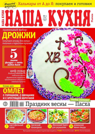 Основа каждого номера — проверенные рецепты блюд с фотографиями. С помощью «Нашей кухни» можно запросто составить меню на каждый день и для праздничного стола. С журналом «Наша кухня» процесс приготовления блюд превратится в удовольствие!