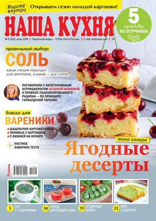 Основа каждого номера — проверенные рецепты блюд с фотографиями. С помощью «Нашей кухни» можно запросто составить меню на каждый день и для праздничного стола. С журналом «Наша кухня» процесс приготовления блюд превратится в удовольствие!