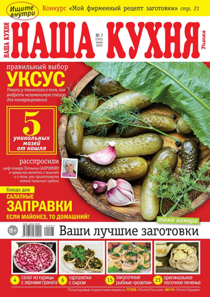 Основа каждого номера — проверенные рецепты блюд с фотографиями. С помощью «Нашей кухни» можно запросто составить меню на каждый день и для праздничного стола. С журналом «Наша кухня» процесс приготовления блюд превратится в удовольствие!