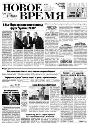 Общественно- политическая газета “Новое Время” была создана в 1992-м году и за 20 лет своего существования сумела заслужить среди армянских читателей право называться лучшей русскоязычной газетой в РА. Помимо сугубо политических тем издание обращается также к вопросам социальным, научным, культурным. Внимание уделяется и проблемам армянской диаспоры…