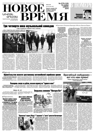 Общественно- политическая газета “Новое Время” была создана в 1992-м году и за 20 лет своего существования сумела заслужить среди армянских читателей право называться лучшей русскоязычной газетой в РА. Помимо сугубо политических тем издание обращается также к вопросам социальным, научным, культурным. Внимание уделяется и проблемам армянской диаспоры…