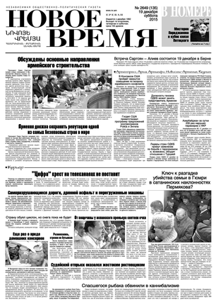 Общественно- политическая газета “Новое Время” была создана в 1992-м году и за 20 лет своего существования сумела заслужить среди армянских читателей право называться лучшей русскоязычной газетой в РА. Помимо сугубо политических тем издание обращается также к вопросам социальным, научным, культурным. Внимание уделяется и проблемам армянской диаспоры…