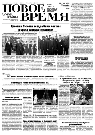 Общественно- политическая газета “Новое Время” была создана в 1992-м году и за 20 лет своего существования сумела заслужить среди армянских читателей право называться лучшей русскоязычной газетой в РА. Помимо сугубо политических тем издание обращается также к вопросам социальным, научным, культурным. Внимание уделяется и проблемам армянской диаспоры…